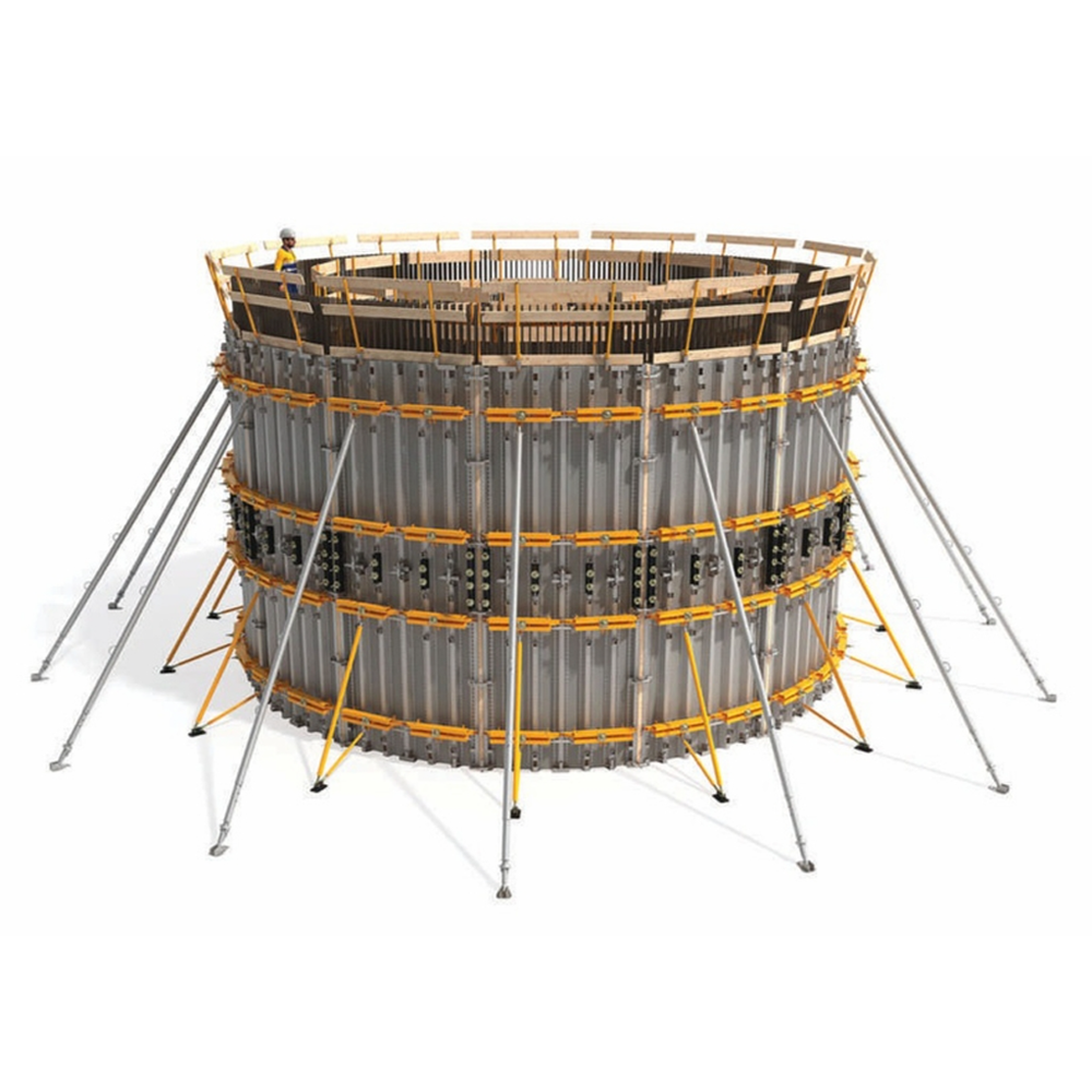 Dairesel Kalıp Sistemi, silindirik ve eğrisel yapı elemanlarının hızlı, güvenli ve hassas bir şekilde inşa edilmesini sağlayan modern bir kalıp çözümüdür. Özellikle su depoları, silo yapıları, bacalar, köprü ayakları ve benzeri dairesel projelerde yüksek performans sunar. Modüler yapısı sayesinde farklı çaplara kolayca uyum sağlayarak projelerde esneklik ve zaman tasarrufu sağlar.