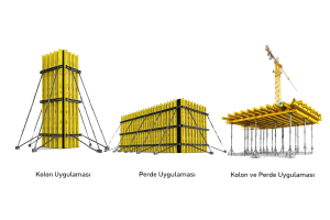 Perde kalıplarında kullanılan H20 kirişler, geniş yüzeylerde yüklerin dengeli dağılımını sağlar. Sistem rijitliğini artırarak güvenli bir çalışma ortamı oluşturur.